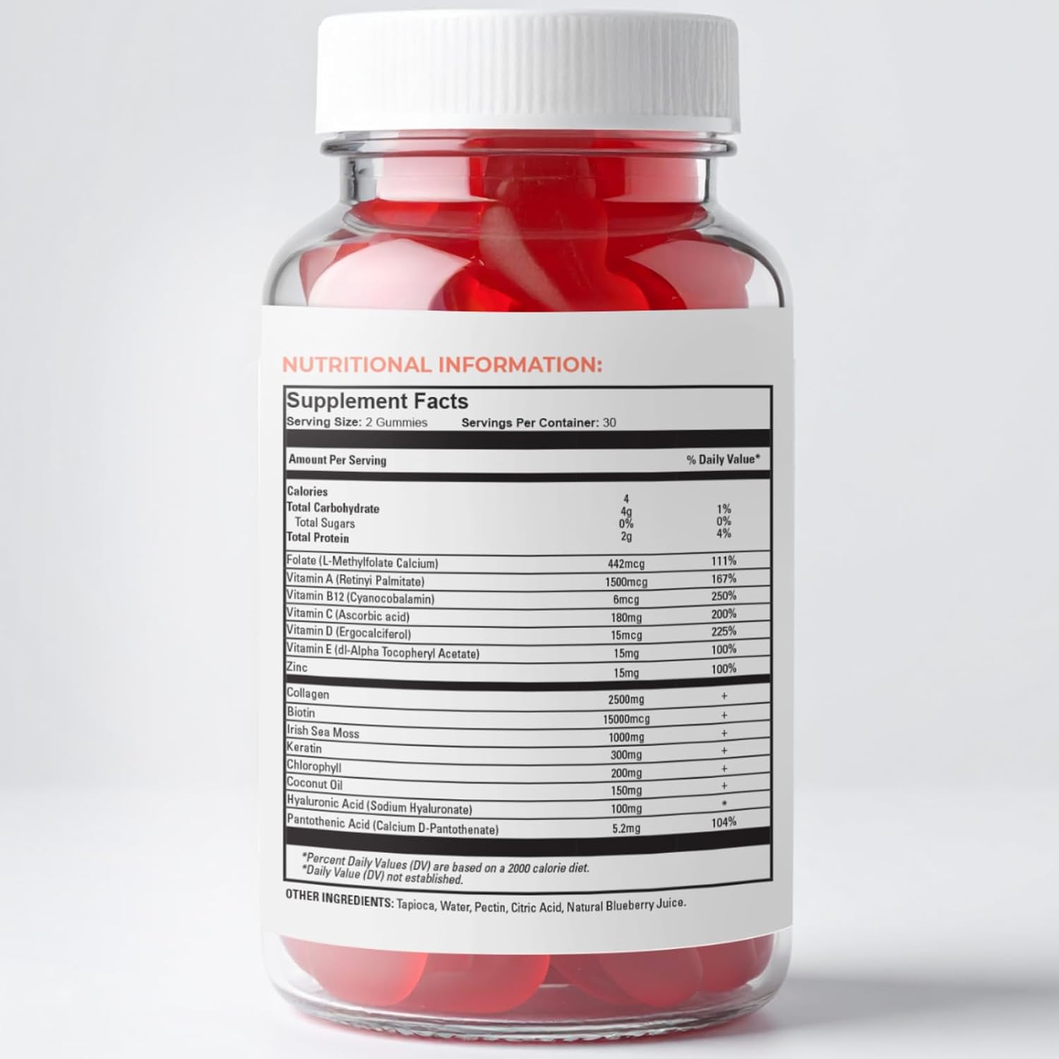 To further nourish your scalp and hair Ebony Medical gummies include Irish sea moss chlorophyll coconut oil and hyaluronic acid—a unique blend designed to hydrate revitalize and create an optimal environment for hair growth. Essential vitamins and minerals including A C D E B12 folate pantothenic acid and zinc round out this formula offering complete nutritional support for hair skin and nails.